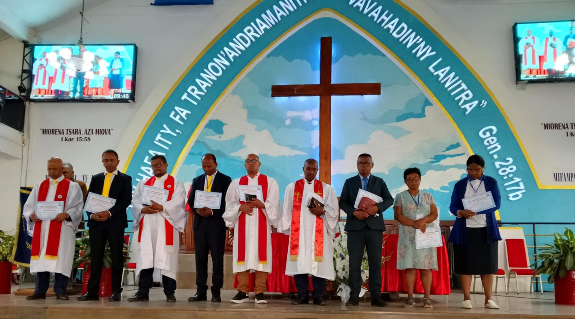 Ny alahady 29 septambra kosa no noraisin-tanana teto amin’ny Fiangonana ireo Mpiandry vaovao. Niarahaba azy ireo ny Biraon’ny Fiangonana notarihin’ny Mpitandrina TOTOFENO Theïs Elia sy ny Mpitandrina RASOANANTOANDRO Julienne.